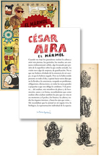 Las materias de Aira –las volteretas que puede provocar una simple transacción de dinero, la repetición y la proliferación, lo insólito en lo cotidiano, lo microscópico y lo cósmico– alcanzan en El mármol una asombrosa condensación. Un fervor único, delicado, se apodera de esta novela y del lector, capturado por el encanto de quien escribe creyendo que la literatura es el mejor de los juegos –de los mundos– posibles.